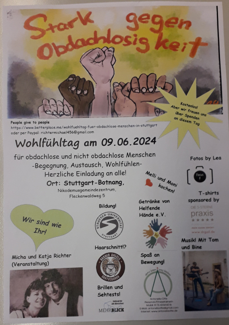 Geldspende in Höhe von 700,00 € für den Wohlfühltag für obdachlose Menschen in Stuttgart Botnang